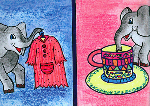 10-يمثل القصة مستخدماً الكلمات الخاصة لكل حرف.