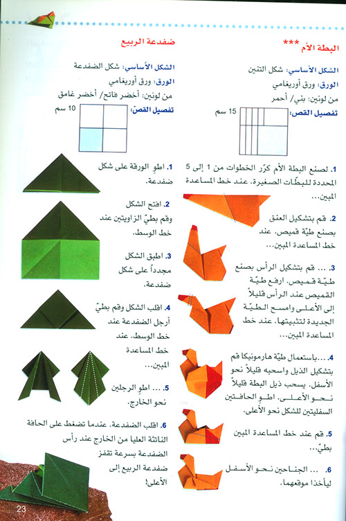 نبذة الناشر:إن الدهشة التي تثيرها الأشكال المصنوعة من الورق لدى الأولاد والناشئة قوية جداً. الأوريغامي هو الفن الياباني لطي الورق الذي يجعل خدع الورق مليئة بالحماس. كيف يحصل هذا هو ما تشرحه ورث أونغارث في هذا الكتاب. يتم شرح خطوات الطي خطوة خطوة وتفسيرها بوضوح. تقوم الأيدي الصغيرة بتحويل الأوراق إلى ...حديقة للحيوانات من الورق، بحيث تصنع الحيوانات الكبيرة مثل الفيل والزرافة والحيوانات الخطرة مثل التمساح والأفعى والحيوانات الصغيرة مثل السلحفاة والضفدعة وغيرها الكثير. الأوريغامي فن بسيط وسهل بحيث يمكن حتى للأطفال الصغار البدء باستعماله، وهو واسع لا حدود لما يستطيع المرء القيام به من خلاله. إقرأ المزيد