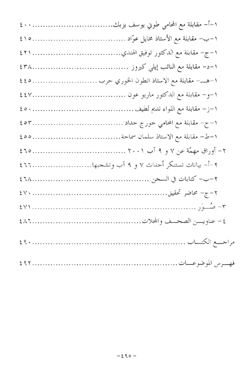 نبذة الناشر:"7 آب 2001 في ذاكرة النضال" كتاب توثيقي يتناول الاعتقالات التي طالب مئات الشباب المنتمين إلى التيارات السيادية المسيحية المعارضة في لبنان، وما رافقها من أحداث وردات فعل، استناداً إلى ما ورد في وسائل الإعلام المرئية والمكتوبة... بالإضافة إلى مقابلات خاصة مع أبرز الموقوفين.