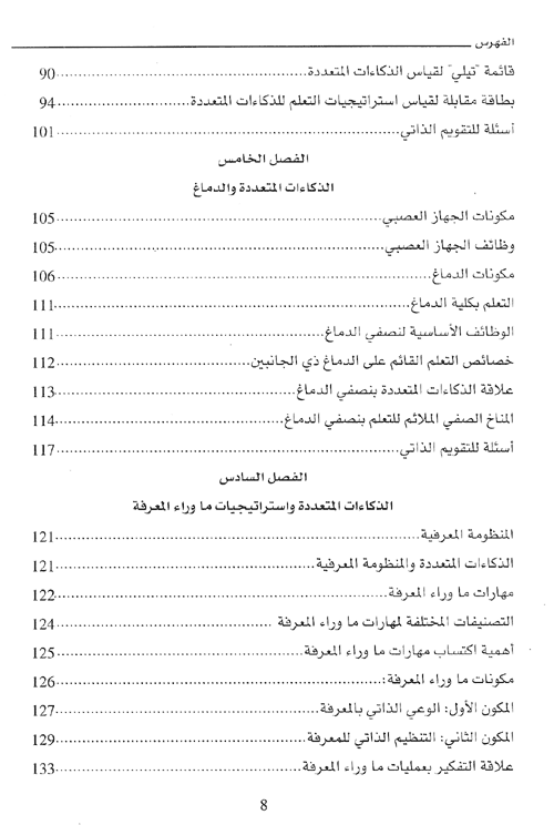 فالكتاب الذي بين أيديكم تناول هذا الموضوع في ثمان فصول، حيث جاء الفصل الأول ليوضح ماهية التدريس الصفي الفعال ومقوماته وخصائص جودة مدخلاته وبعض أساليب التدريس الصفي الحديثة، أما الفصل الثاني يوضح النظرة التقليدية للذكاء، وعرض لبعض نظريات الذكاء، أما الفصل الثالث فتناول النظرة الحديثة للذكاء فوضح الفرق بين الذكاء التقليدي والذكاء الحديث والمقارنة بين نظريات الذكاء المختلفة مع التركيز على نظرية "جاردنر" للذكاءات المتعددة، أما الفصل الرابع فقد تناول قياس الذكاءات المتعددة وخاصة قياس الذكاء من الناحية التاريخية، ونقد اختبارات الذكاء، وتطوير طرق قياس الذكاءات المتعددة، وبعض نماذج قياس الذكاءات المتعددة، في حين تناول الفصل الخامس علاقة الذكاءات المتعددة بالدماغ، حيث تضمن هذا الفصل مكونات الجهاز العصبي ووظائفه، ومكونات الدماغ، والتعلم بكلية الدماغ، وعلاقة الذكاءات المتعددة بنصفي الدماغ، والمناخ الصفي الملائم للتعلم بنصفي الدماغ. بينما ركز الفصل السادس من هذا الكتاب على الذكاءات المتعددة وعلاقتها باستراتيجيات ما وراء المعرفة. إلا أن الفصل السابع قد عالج كيفية تنمية الذكاءات المتعددة من خلال المنهاج المدرسي، حيث اشتمل هذا الفصل على التطور النمائي للذكاء، واستراتيجيات المعلم للذكاءات المتعددة، وخصائص المتعلم الذكي، والذكاءات المتعددة والمنهاج المدرسي، والمناهج المبنية على نظرية "جاردنر" للذكاءات المتعددة. أما الفصل الأخير (الثامن) فقد اهتم بالتخطيط التدريسي لتنمية الذكاءات المتعددة، إذ احتوى على علاقة نظرية الذكاءات المتعددة بتعليم وتعلم الرياضيات، وقوائم تدريسية للمعلم لتنمية الذكاءات المتعددة، ومصفوفة تخطيط درس مبني على الذكاءات المتعددة، ونماذج لتخطيط دروس من خلال الذكاءات المتعددة. إقرأ المزيد