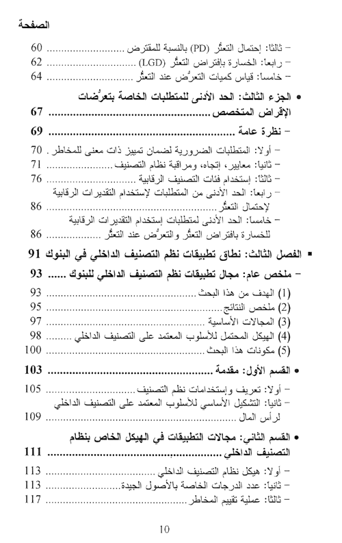 ويتحدث الكتاب عن المعايير المطلوبة لقيام البنك باستخدم نظام التصنيف الائتماني الداخلي كما هي واردة من قبل لجنة بازل، وهي: الالتزام بالمتطلبات الدنيا وتعميم نظام التصنيف وأبعاد التصنيف، وهيكل التصنيف ونزاعة عملية التصنيف، وعمليات نظام تطبيق المخاطر، والتخطيات والاحتفاظ بالبيانات، واختبار الحساسية أو الضغوط المستخدمة في تقدير مدى كفاية رأس المال والحوكمة والإشراف عليها. إقرأ المزيد