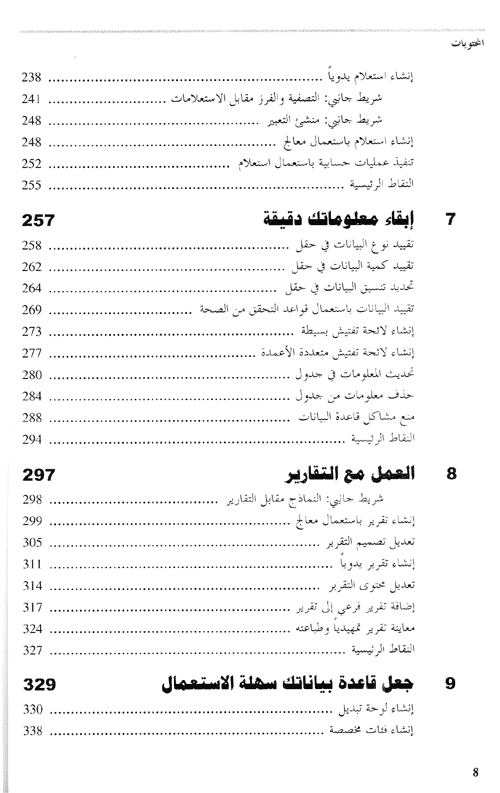 اختبر التعلم بالطريقة السهلة-وعلّم نفسك بسرعة كيفية بناء حلول قواعد بيانات باستعمال أكسس 2007. بواسطة هذه السلسلة، أنت الذي تتحكم بعملية التعليم-فتكتسب وتتمرن على المهارات التي تحتاج إليها فقط عندما تحتاج إليها!