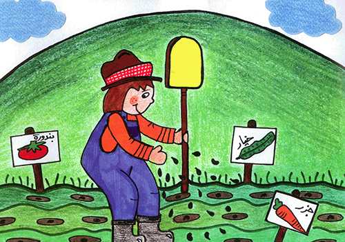 10-يمثل القصة مستخدماً الكلمات الخاصة لكل حرف.