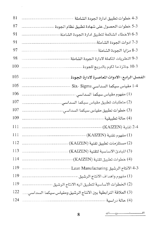 وتجري محاولات حثيثة حالياً لنقل عملية التخطيط للجودة الشاملة واستدامتها إلى مرحلة استخدام النماذج الإحصائية والرياضية، وما يسعى إليه هذا الكتاب هو تقديم حالة دراسية للاستدلال على أسلوب التطبيق وتيسير أسلوب الأخذ به.
