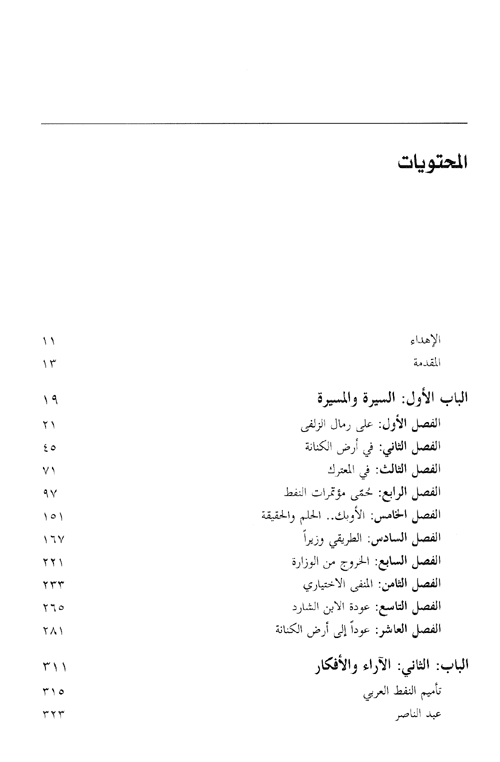اتكأ كاتب السيرة على المعلومة والوثيقة والصورة والتحليل، ليوثق سيرة أول وزير نفط في التاريخ السعودي، مبتدئاً من مولده وظروف نشأته في مسقط رأسه الزلفي (وسط السعودية) ومتتبعاً مسار حياته المبكرة وتنقلاته في الكويت والهند ومصر، ثم أميركا التي تخرج فيها عام 1948م. عارضاً لمسيرته العملية في صناعة النفط العربي وتأسيس دعائمه من خلال صراعه الطويل مع شركة النفط الأجنبية، ومن ثم دوره الرئيس في تأسيس منظمة الدول المصدرة للنفط، لتخرج بذلك الحكومات من تحت رحمة الشركات.