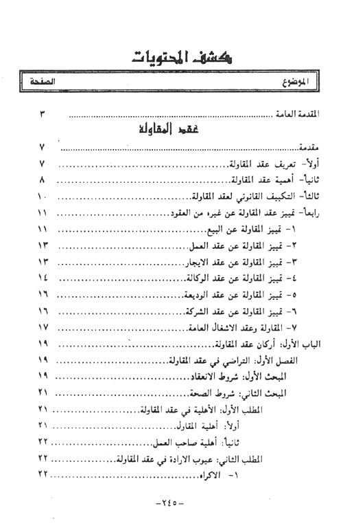 وقد تمكن شرح ثلاثة عقود، اثنان منها نظم المشرع الأردني أحكامهما ضمن العقود المسماة الواردة على العمل، وهما، عقدا المقاولة والوكالة، والثالث نظمت أحكامه مع ما أسماه المشرع الأردني بعقود التوثيقات الشخصية، وهو عقد الكفالة هذه العقود الثلاثة ضمها هذا المؤلف الذي اقتصر عليها دون غيرها حتى ينمكن من الإلمام بجميع جوانب هذه العقود، كما لم يبخل على القارئ بمقارنة مع القانون المدني الفرنسي وتطوراته الحديثة. ودعم البحث كله بقرارات القضاء الأردني والفرنسي أحياناً حيث وجدنا أن الإشارة إليها ضرورية لإطلاع القارئ على التطبيقات القضائية للأحكام المتعلقة بالعقود موضوع الدراسة.نبذة المؤلف:لقد أتاح لي تدريسي لمواد القانون المدني في قسم القانون بجامعة اليرموك الأردنية فرصة الوقوف على حقيقة ندرة المؤلفات في هذا المجال أو تركزها في موضوع دون آخر. ففي نطاق العقود المسماة نجد أن البحث ينصب أكثر، ليس في الأردن فحسب بل في غيره من الدول أيضاً، على عقدي البيع والإيجار بسبب أهمية هذين العقدين وانتشارهما لا شك، ولكن أيضاً بسب وفرة المراجع الفقهية التي تسهل على الباحث مهمته. ولكن ذلك يجب ألا يصل إلى حد إهمال عقود أخرى تقليدية الأحكام أو متصاعدة الأهمية، لا بد أن تجد من يشرحها ويبسط أحكامها حتى تكتمل الفائدة لكل دارسي القانون والمشتغلين فيه. وقد تمكنا بعون من الله وتوفيقه من شرح ثلاثة عقود، اثنان منها نظم المشرع الأردني أحكامهما ضمن العقود المسماة الواردة على العمل، وهما عقدا المقاولة والوكالة، والثالث نظمت أحكامه مع ما أسماه المشرع الأردني بعقود التوثيقات الشخصية. وهو عقد الكفالة. هذه العقود الثلاثة ضمها هذا المؤلف الذي اقتصر عليها دون غيرها حتى نتمكن من الإلمام بجميع جوانب هذه العقود، حيث درسناها في أركانها وآثارها وأسباب انتهائها. وحتى تكتمل الفائدة اخترنا أن تكون الدراسة مقارنة مع المدونات العربية الكبرى التي نعتقد بأنها قد تبنت اتجاهات خاصة في التقنين العربي، وهي القانون المدني المصري، القانون المدني العراقي وتقنين الموجبات والعقود اللبناني. كما لم نبخل على القارئ الكريم بمقارنة مع القانون المدني الفرنسي وتطوراته الحديثة. ودعمنا البحث كله بقرارات القضاء الأردني والفرنسي أحياناً حيث وجدنا أن الإشارة إليها ضرورية لاطلاع القارئ على التطبيقات القضائية للأحكام المتعلقة بالعقود موضوع الدراسة. ولا نخفي ما لاقيناه من صعوبات في إتمام هذا المؤلف. وقد زاد منها ازدواج المصادر التي استقى منها المشرع الأردني أحكام قانونه المدني التي تتأرجح بين الفقه الإسلامي بمذاهبه العديدة، مما اقتضى الإشارة إلى أحكام هذا الفقه أيضاً، وبين القوانين المدنية العربية وما يقف وراءها من المدونات الأوروبية والفقه الغربي. وفي الختام نأمل أن نكون قد أسهمنا في تعزيز علم القانون وثقافته في هذا البلد العزيز والله من وراء القصد. إقرأ المزيد