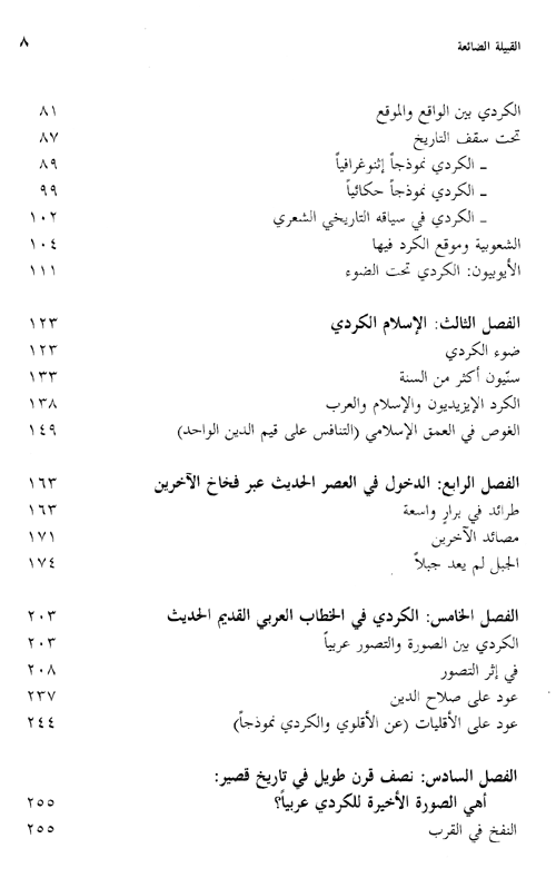 ويفرد المؤلف فصلاً عن الكردي في الخطاب العربي الحديث مستعرضاً وناقداً ومفنداً كل ما كتب أخيراً عن الكرد وفيهم لعشرات المؤلفين المعاصرين، حيث تبدو الثنائيات الكردية الصارخة المتقاربة حيناً والمتضاربة أكثر الأحيان وخصوصاً: الكرد/العرب -الكرد/الإسلام وسوى ذلك. إقرأ المزيد