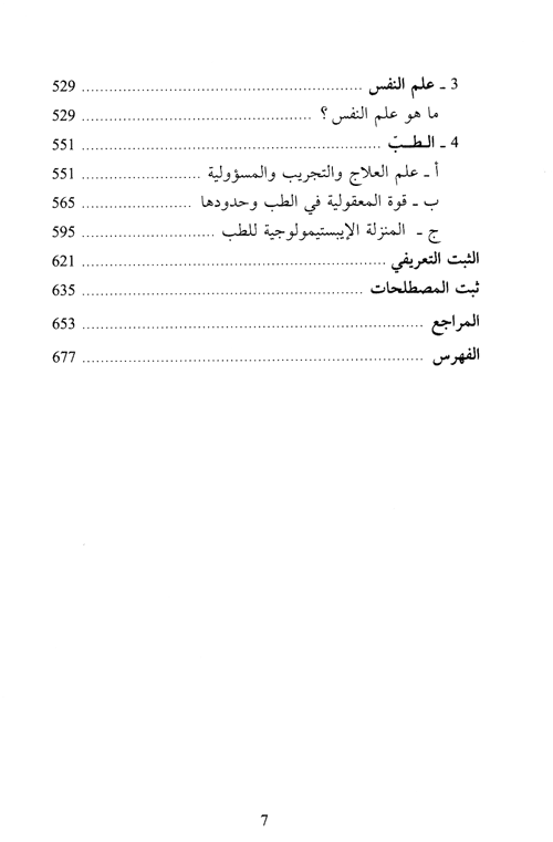 إن القسم المنهجي الذي لا يكاد يمثّل في الواقع نصف الكتاب يمثّل ها هنا جانب التاريخ لهذا الميدان، فمفهوم تاريخ العلوم الذي هو الموضوع الأساسي للدراسات له شهادة ميلاد في أعمال كتّاب القرن الثامن عشر الفرنسيين، وبخاصة فونتونال وكوندورسيه. هذا وإذا كان الطابع الغالب على القسمين الأولين هو هاجس المنهج، فإن الطابع الغالب على القسم الثالث والأخير، والذي يأتي تحت عنوان "بحوث" Investigation هو الممارسة الفعلية لتاريخ العلوم على المواضيع التي اختار كانغيلام أن يعمل عليها طيلة حياته. وهي مواضيع علوم الحياة وما يحف بها من قضايا تتعلق بالنفس، وبالطب من جهة المعقولية، ومن جهة المنزلة الإيبستمولوجية. ويمثّل هذا القسم أكثر من نصف الكتاب، ويمكن إجمال خصائص هذا القسم في المعاني التالية: