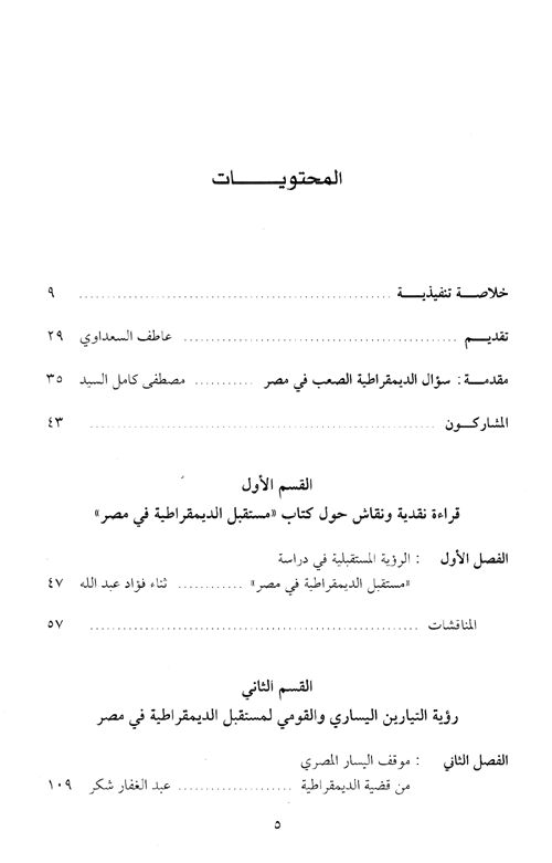 في تقديمه لأعمال هذا الكتاب أشار الدكتور مصطفى كامل السيد أن القوى السياسية الفاعلة في مصر لم تستقر بعد أن استراتيجية للوصول إلى الأوضاع الأكثر ديمقراطية، بل لا يبدو أنها راغبة في مواجهة بعض القضايا الشائكة على طريق الانتقال إلى هذه الأوضاع، مؤكداً ضرورة التمييز بين مستقبل النظام السياسي في مصر في الأجل القصير، ومصيره في الأجل الطويل.