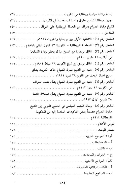 وأخيراً ألحق بالبحث مجموعة من الملاحق للمعاهدات التي عقدتها بريطانيا مع الشيخ مبارك خلال فترة حكمه وللرسائل التي أرسلها الشيخ لوكلاء بريطانيا السياسيين في الخليج العربي.