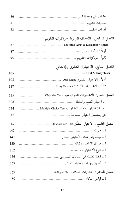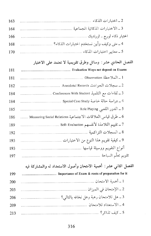ومن الجدير ذكره أن الكتاب لم يهمل الطرق الحسابية والإحصائية بل أولاها اهتماماً خاصاً سيما في مجال تحقيق الفهم العام والاستيعاب لكل ما يمت بصلة إلى الاختبارات التي يهدف المعلم إلى الاعتماد عليها من أجل تقييم التحصيل التربوي عند التلامذة والطلبة والحكم على استعدادهم ومقدرتهم بحيث يؤدي الغرض المنشود.