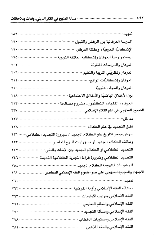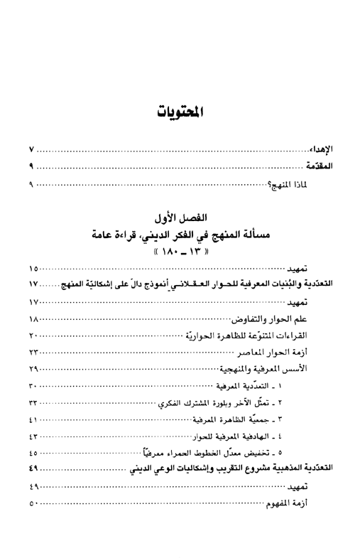 ليس هذا الكتاب دراسة شاملة وبنيوية لموضوع المنهج، إنما هو بتعبير دقيق "أوراق في المنهج"، فلا ينبغي التعامل معه أكثر من ذلك، من هنا نجده يقدم تصورات، لكنه لا يركز على دراسة شاملة للموضوع، لأن مسألة المنهج في العرفان الإسلامي مثلاً تحتاج لوحدها إلى دراسة مستقلة، كما يختص الكتاب بمسألة المنهج في الفكر الديني الإسلامي فقط، ولا يدرس الموضوع أبعد من ذلك، لهذا كان هناك تركيز على العلوم الإسلامية، دون سائر العلوم الدينية غير الإسلامية.