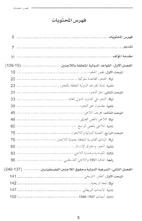 يستغرق البحث في تعريف اللاجئ لأي بلد، وحقوقه، ومصادر حمايته، والتشريعات المتعلقة بذلك، حوالي نصف الكتاب. ...والأمر المهم في ذلك أن هذا ينطبق فقط على اللاجئين بصفة العموم، حسب تعريف المفوضية العامة اللاجئين "UNHCR" ولا ينطبق على اللاجئين الفلسطينيين.