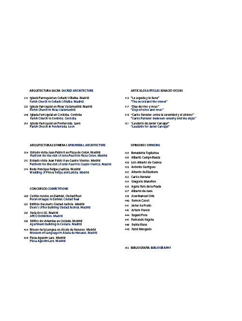 نبذة الناشر:The architecture of Vicens and Ramos holds a privileged position within the Spanish architecture of the last few years, for their outstanding resolution of the architectural project. Each project has supposed a creative challenge from them. They have built unique works, with great pedagogical value for other architects. In this ...Monograph, a selection of their most emblematic work is shown, like Las Matas, Faculty at the University of Navarra…etc. and other projects not published to date like the House in Moraleja, the Church at Rivas, Coliseum of the Three Cultures among others. An interview with Ignacio Vicens, writings from persons of different professional sectors, friends, and images that reflect the professional and human aspects of this architect and professor at the Architecture School in Madrid إقرأ المزيد