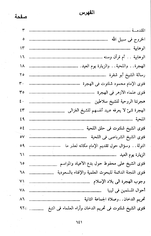 وفي هذا الكتاب يقدم أحد تلامذته الشيخ فتاوى أستاذه في شتى الأمور وخصوصاً في الأمور والمستحدثات التي تعرض لنا في عصرنا هذا وفي بعض المسائل والقضايا، كالقول في الهجرة، وحلق اللحية وبدع الأعياد والمواسم وأحوال المسلمين في ليبيا، وتحريم الدخان وإمامة شارب الدخان. والاغتيالات، وأخطاء الكتب، ومسائل فقهية أخرى، وقد راعى المؤلف في ذلك مقارنتها بفتاوى العلماء. إقرأ المزيد