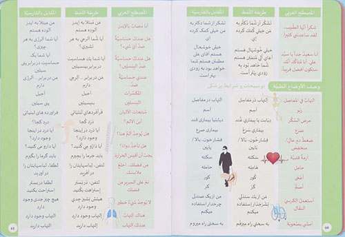 ليس هذا فحسب بل لقد وضع طريقة نطق الكلمة باللغة العربية، حتى يكون نطقها كأهل اللغة، وقد قام بإعداد هذه المادة متخصصون في اللغة الفارسية وتمّت مراعاة إختيار المواضيع لتناسب الإستخدام اليومي في كافة المجالات، سواء السياحية أو العلمية، ويمكن لهذا الكتاب أن يكون رفيقك في السفر حيث ستجد أنه أفضل ما أنتج في هذا المجال ليناسب المحادثات في العصر الحديث وليكون ذو فائدة للمتعلم.نبذة الناشر:• سلسلة تعليميّة للّغات الحيّة تهدف إلى تعليم اللّغة للمبتدئين وللذين يرغبون بالسّفر إلى بلدان جديدة.
