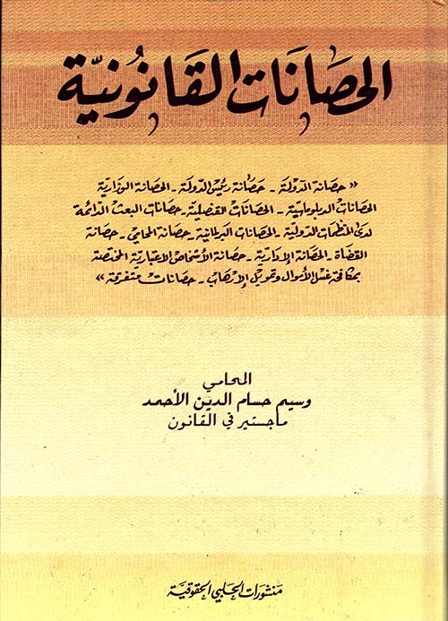 كما أن الحصانة تستمدّ شرعيّتها القانونية أما من أحكام الإتفاقيات الدولية كإتفاقية فيينّا للعلاقات الدبلوماسية عام ١٩٦١ مثلاً أو من العرف الدولي أو من أحكام الدساتير أو التشريعات الداخلية والقوانين الخاصّة كالأنظمة الداخلية للبرلمانات أو قوانين تنظيم المهنة كقوانين السلطات القضائية أو قوانين تنظيم مهنة المحاماة أو قوانين نظام الموظفين... إلخ.نبذة المؤلف:يقصد بالحصانة بشكل عام حماية أشخاص معيّنين ضد الملاحقة القضائية عن الأفعال التي يرتكبونها، في معرض قيامهم بمهامهم الرسميّة، وهي مقرّرة من أجل المصلحة العامة، لا من أجل مصالح أولئك الأشخاص الذين يتمتّعون بها، كما أنها قد تأخذ أشكالاً أخرى كالحصانة ضد العزل مثلاً بالنسبة للقضاء أو حصانة النائب البرلماني بالنسبة لما يبديه من آراء او أفكار... إلخ.