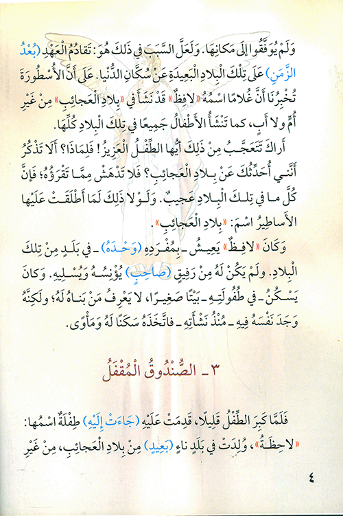 وكان "لافظ" يعيش- بمفرده (وحده)- في بلد من تلك البلاد. ولم يكن له من رفيق (صاحب) يؤنسه ويسلبه. وكان يسكن- في طفولته- بيتاً صغيراً، لا يعرف من بناهُ له، ولكنَه وجد نفسه فيه- منذ نشأته- فاتَخذه سكناً له ومأوى، حتى تعرَف إلى "لاحظة"، وهي طفلة ولدت في بلد ناء من بلاد العجائب، فهيا بنا نقرأ هذا الكتاب لنطلع على ما سيحصل لهذين الطفلتين عندما تفتح لاحظة صندوقاً معقل لا ينبعني لأحد أن يطلع عليه. إقرأ المزيد