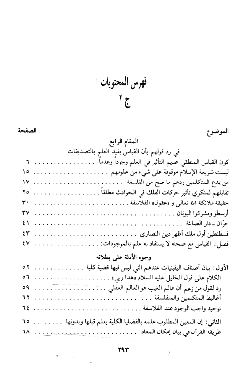 نبذة نيل وفرات:مما لا شك فيه أن الإمام "ابن تيمية" كان بحراً واسعاً لا ينضب معينه ولا تتوقف قريحته، لقد خيّر الشيخ الألباب وبالوقت عينه أثلج الأفئدة، شدّد النكير على الفرق بمثل ما تشدد في مذهبه، وهو في منهجه وعطائه ترك جمعاً من المصنفات في شتى العلوم، ومن بينها كانت رائعته ...التي جمعها في هذا الكتاب "الرد على المنطقيين" والذي تميز فيه ابن تيمية في منهجية بحثه: وفيه يبين أن كثيرا مما ذكره الفلاسفة اليونان في أصولهم في الإلهيات وفي المنطق هو من أصول فساد قولهم في الإلهيات، مثل ما ذكروه من تركب "الماهيات" من الصفات التي سموها "ذاتيات" ومما ذكروه في حصر طرق العلم فيما ذكروه من "الحدود والأقيسة البرهانيات"، بل فيما ذكروه من الحدود التي بها تعرف التطورات، بل ما ذكروه من صور "القياس" وموادة "اليقينيات" فكان أن رد عليهم في كتابه هذا من خلال بحثين رئيسيين: بحث الحد والتصور، وبحث القياس والتصديق، ويصب ابن تيمية مقامين للحد و التصور ومقامين للقياس والتصديق، فضم كل مبحث مقامين بحسب ما سماهما الإمام، إذ ُجمع الكتاب على أربعة مقامات: المقام الأول التصور المطلوب لا ينال إلا بالحد، فنقد هذا القول واعتبره سالباً، المقام الثاني: الحد يفيد العلوم بالتصورات، وهذا القول إيجابي أبدى به رأيه، المقام الثالث: التصديق المطلوب لا ينال إلا بالقياس، فنقد هذا القول أيضاً، المقام الرابع: القياس يقيد العلم بالتصديقات واعتبر القول إيجابياً، هذا وقد جاء الكتاب محققاً وقد تجلى ذلك بـ إعادة ضبط آيات القرآن الكريم وإسنادها في الحاشية مع حصرها في المتن، إعادة ضبط الفرق والأعلام والأماكن، تصويب الأخطاء الواردة في متن النص، هذا وقد عني المحقق بوضع فهرس للمصطلحات المنطقية، وفهرس للأعلام والفرق والأماكن، إلى جانب فهرس موضوعات الكتاب. إقرأ المزيد