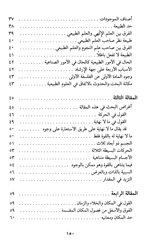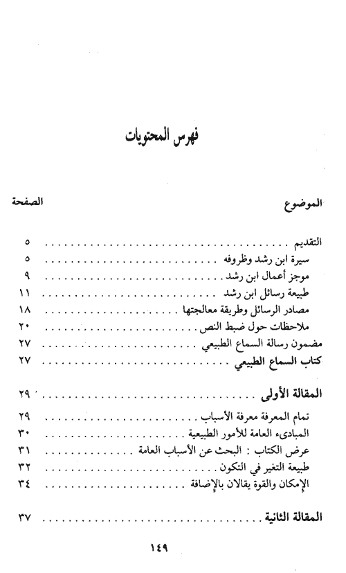 وقد عمد المحققان إلى جعل المجموعة على أربعة أجزاء، أولها: السماع الطبيعي، ثانيها: السماء والعالم، الكون والفساد. ثالثها: الآثار العلوية. رابعها: كتاب النفس. تناولت الأجزاء الثلاثة الأولى المتعلقة بالرسائل الجانب الطبيعي وتركيب الموجودات في استنادها إلى عنصرين: المادة والصورة، وتركيب الموجودات في استنادها على عنصرين: المادة والصورة. والمادة برأي ابن رشد تمشياً مع أرسطو هي كما قال في "السماع الطبيعي": "الموضوع الأقصى لجميع الكائنات الفاسدات، ليس فيه شيء من الفعل أصلاً دلاله صورة تخصّه". فالمادة بهذا المعنى مبدأ هيولاني لا وجود له بذاته بل بالصور التي تتعاقب عليه. ومن هذه المادة تحث الموجودات الأولى أو الاسطقسات الأربعة: النار والماء والهواء والتراب. ثم يتصف بكل منها إحدى الطبائع الأربعة: الحار والبارد والرطب واليابس، ثم يستند إليها إحدى الحركات الطبيعية الأولى، وهي من فوق إلى تحت ومن تحت إلى فوق، وهما حيزان مطلوبان في هذه العناصر، كما جاء في رسالة "السماء والعالم". ومن ثم تحدث الأجسام المركبة عن الأجسام البسيطة. وينتج التركيب من فعل الكيفيات الأولى المضادة السابقة الذكر. فالثقل والخفة والصلابة واللين والتخلخل والكثافة واللطافة والغلظ والقحل واللزوجة والخشونة والملامسة هي الكيفيات المنتجة كما صرح في رسالة "الكون والفساد". إذ أنها تدرك بالحس، منها ما هو فاعل ومنها ما هو منفعل. الفاعل كالحرارة والبرودة، والمنفعل كالرطوبة واليبوسة.