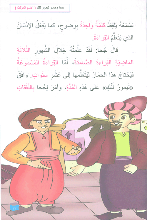 نبذة الناشر:يشتمل هذا الكتاب على القصص الآتية : جحا والخطاط، جحا والدب الكبير، جحا ورنين الدراهم، جحا والدجاجة المطبوخة، جحا وحمار تيمور لنك . جميع القصص تبعث على الفرح والمسرات، والابتسام حينا، والضحك حينا آخر، مع شخصية جحا المرحة . وتهدف هذه القصص إلى تنمية قدرات الطلاب في أساسيات قواعد اللغة ...العربية، بأسلوب سهل ومبسط وتلقائي من خلال متعة القراءة مع نوادر جحا إقرأ المزيد