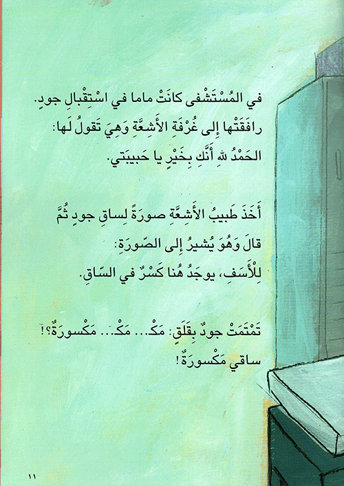 نبذة الناشر:تقع جود من فوق شجرة فتكسر ساقها، يزورها الأهل والأصدقاء يحملون الهدايا والتّمنّيات بالشّفاء العاجل، ولكن ما الّذي يضايق أخاها الصّغير زيداً؟...