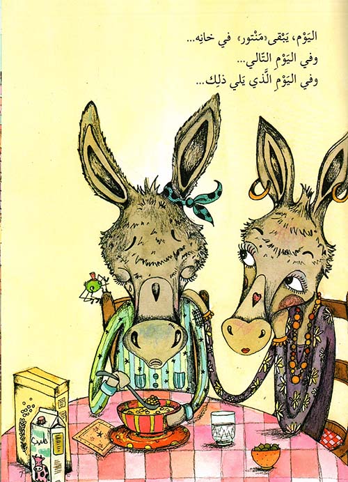 نبذة الناشر:يعيش الحمار منتور في قرية شوحان. وهي قرية مكتظة بالسكان يعمل فيها منتور عامل التنظيفات. لكن عمله الشاق والحمولة الزائدة من النفايات التي يحملها على ظهره كل يوم أتعبت منتور كثيراً ولهذا قرر عدم الإستمرار بعمله. كيف سيصبح حال القرية عندما يتوقف منتور عن عمله؟ هل سيعود منتور إلى العمل؟ ...ما هي الشروط؟ إقرأ المزيد