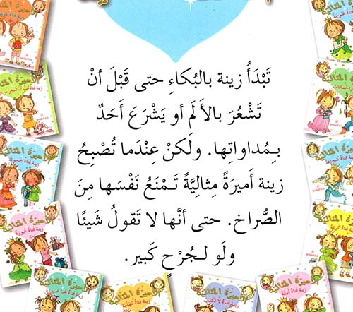 نبذة الناشر:تبدأ زينة بالبكاء حتى قبل أن تشعر بالألم أو يشرع أحد بمداواتها. ولكن عندما تصبح زينة أميرة مثالية تمنع نفسها من الصراخ. حتى أنها لا تقول شيئاً ولو لجرح كبير.