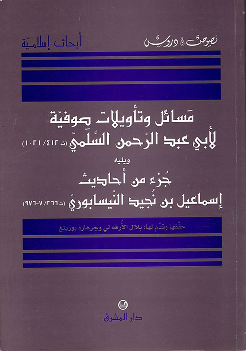 مسائل وتأويلات صوفية لأبي عبد الرحمن السلمي (ت412/1021) ويليه جزء من أحاديث إسماعيل بن نجيد النيسابوري (ت366/976)