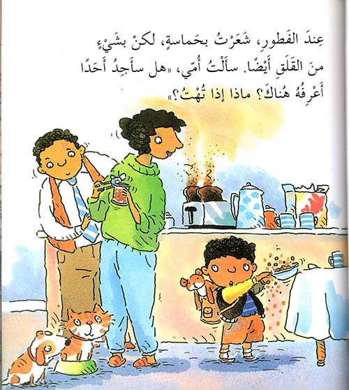نبذة الناشر:الخِبْرات الجديدة يُمكِنُ أن تكونَ قاسية على الأطفال؛ هذا الكتاب، برُسومه المُسلّية ونُصوصه البَسيطة، يَروي قِصّةَ أوّلِ يوم في المدرسةِ، بطَريقة إيجابيّة مُطَمئنة.