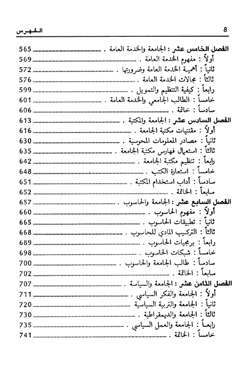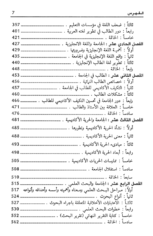 نبذة الناشر:هذا الكتاب مرجع شامل يسد ثغرة في المكتبة العربية تتعلق بقواعد الدراسة في الجامعة ومؤسسات التعليم العالي في الوطن العربي. وقد تم إعداده ليكون بمثابة دليل عمل لمساعدة الطالب في الجامعة والتعليم العالي من أجل تحقيق أهدافه الدراسية، ويتناول كثيراً من الأمور التي تهمه وعلى سبيل المثال فلسفة الجامعة وأهدافها، ...الخطط الدراسية، أساليب الدراسة، الوسائل التعليمية، التقييم في الجامعة، الجامعة واللغة العربية، الجامعة واللغة الإنجليزية، الجامعة والبحث العلمين مكتبة الجامعة، الجامعة والحاسوب، الجامعة والسياسة.