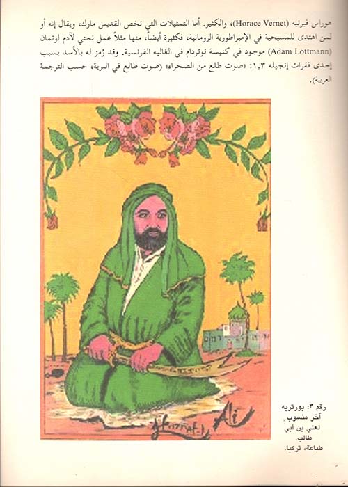 ما يهتم به الكتاب هو الطبيعة التشكيلية والتاريخية والمغزى الجمالي لمجموعةٍ من الصور التي قدمت الخليفة الرابع علي بن أبي طالب، على طول وعرض العالم العربي: ...في الفن الشعبي التونسيّ على الزجاج، وفي الفن الفطري السوري (أبو صبحي التيناوي)، وفي مثيله المصري بوفرة، كذلك في المغرب الأقصى، لكن وبشكل أخص في الجانب الشرقيّ من العالم العربي، لدى الشيعة في العراق ولبنان ومناطق كبيرة من الخليج العربي، ولا تنسى مناطق واسعة من القارة الآسيوية: في إيران وتركيا وأفغانستان وباكستان والهند وغيرها من البلدان الإسلامية.