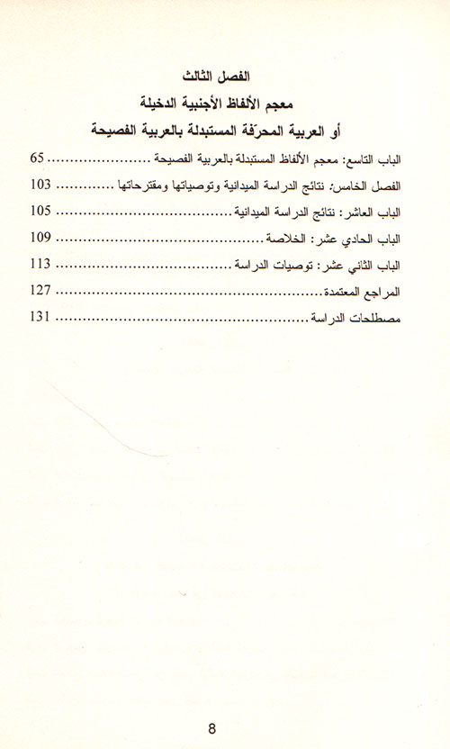 لذا فقد سارت الدراسة بين فصلين متوازيين؛ فصل نظري أبان أهمية الموضوع وماهيته. وفصل عملي ميداني مجدول، وضح الألفاظ ومدلولاتها، وأثبت أصولها، فتوّجَ بذلك المقصود وأوضحَ المراد. ثم ختمت بغربلة للنتائج المحصلة، وتم جدولتها، واستخلصت أعدادها ونسبها المئوية من الكل المرصود من الألفاظ المتخلى عنها خلال هذه العقود التسعة المقصودة، ووضحت عبر رسومات بيانية، ثم نوقشت لتأتي بعدها التوقعات القابلة للحصول. وأنهيت بالتوصيات المستنتجة من النتائج لأجل الفائدة.