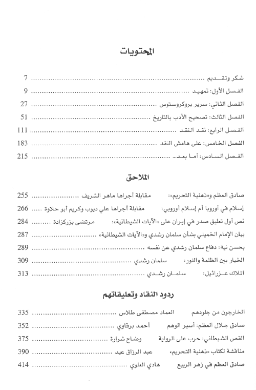 يتعدى كتاب الدكتور صادق المعنى الشائع والعادي للرد من حيث أنه ينطوي على قراءة مدروسة وموثقة لرواية رشدي نفسها وعلى مناقشة نقدية معمقة لقراءة نقاده لها وعلى جهة نظر مستقلة في القضايا الكبرى التي أثارها هؤلاء النقاد حول علاقة الأدب بالحياة والتراث والتاريخ والحقيقة والدين وما إلى ذلك من قضايا حيوية وهامة.