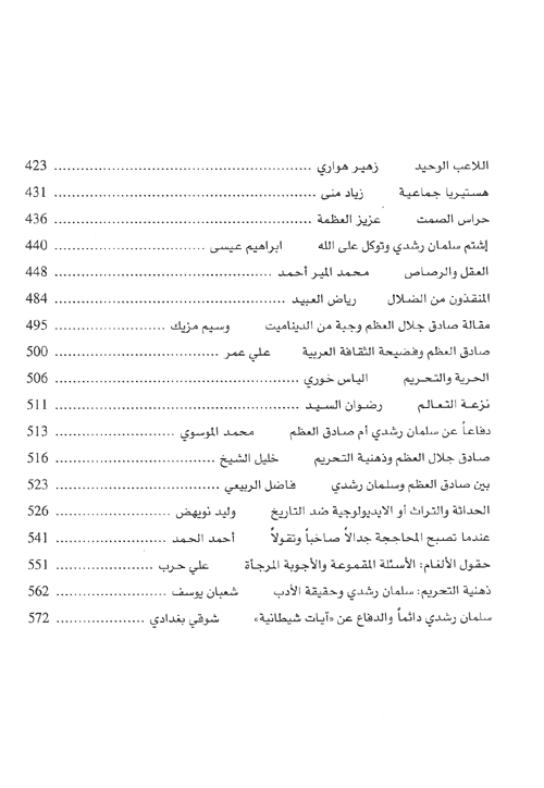 وفي هذا الكتاب "ما بعد ذهنية التحريم" يجد القارئ حصيلة جهد صادق العظم على هذا الصعيد ولا بد من الإشارة أن المؤلف ركز اهتمامه للرد على أربعة من نقاده (العماد مصطفى طلاس، الباحث هادي العلوي، الدكتور عبد الرزاق عيد، الدكتور أحمد برقاوي). كما ضمن الكتاب ملاحق حويت على نصين منشورين للمؤلف يتطرقان إلى مشكلة "الآيات الشيطانية" وإلى بعض محتوياتها وملابساتها بالإضافة إلى ترجمة لأحد فصول "الآيات الشيطانية" والنص الذي نشره رشدي دفاعاً عن نفسه تحت عنوان "بحسن نية"، كما يجد القارئ في هذه الملاحق ترجمة عن الفارسية لأول مراجعة صدرت في صحافة إيران الإسلامية لـ"آيات شيطانية" بالإضافة إلى نصّ الشروح التي رافقت نشر "فتوى" الإمام الخميني للمرة الأولى في حصيفة "كيهان" شبه الرسمية.نبذة الناشر:يقدم صادق جلال العظم في هذا الكتاب مزيداً من المعالجة المركَّبة والمتقدمة للقضايا التي أثارتها رواية سلمان رشدي "الآيات الشيطانية" والتي أثارها كتاب المؤلِّف نفسه "ذهنية التحريم: سلمان رشدي وحقيقة الأدب" وذلك عبر الردّ الموسَّع والحي على أبرز نقاده: العماد مصطفى طلاس والباحث التراثي هادي العلوي والناقد الأدبي الدكتور عبد الرزاق عيد والمفكر الدكتور أحمد برقاوي.
