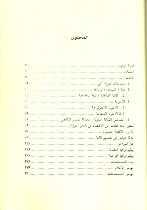 نبذة الناشر:ترصد المقالات المترجمة في هذا الكتاب تطور النحو التوليدي في صيغته الأخيرة المعروفة بالبرنامج الأدنوي، على امتداد العشر سنوات الأخيرة. والتطور المرصود هنا لا يشمل فقط تطور الهندسة الداخلية للنحو ولكن أيضاً عملية إعادة تشكيل الخريطة المعرفية والعلمية الجديدة التي أصبحت تنتمي إليها اللسانيات بوصفها علماً يَعُدُّ اللغة موضوعاً طبيعياً. ...وبالنظر للغنى الفكري، الفلسفي والعلمي، الذي تتميز به الترجمة، فإنها تهم، إلى جانب اللساني، المشتغلَ بالفلسفة وعلم النفس وعلم الأحياء والحاسوبيات وغيرها من العلوم المعرفية. إقرأ المزيد