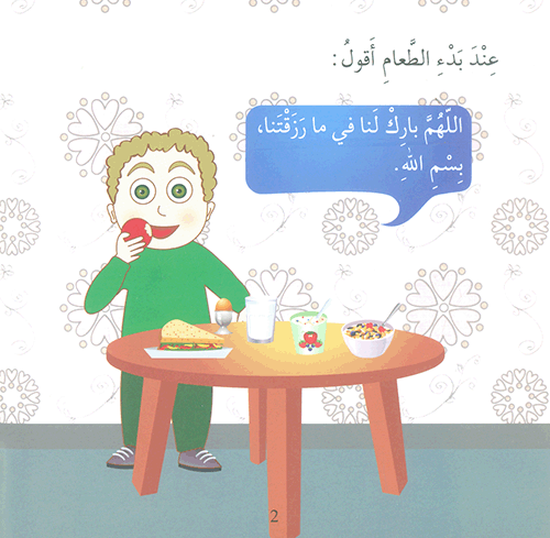 نبذة الناشر:يزوّد الكتاب القارئ الصغير بالأدعية الأساسية التي يحتاجها في حياته اليومية ولا سيما في الأوقات التالية: عند البدء بالطعام، عند الانتهاء من الطعام، عند العطس، عند دخول المنزل، وعند الخروج منه، عند ركوب الدراجة او السيارة او الطائرة، عند هطول المطر، عند توقف المطر، عند النوم، عند الاستيقاظ.. وذلك من ...خلال جمل واضحة ورسوم طفوليّة. الكتاب جزء من سلسلة "أنا مسلم" التي تهدف إلى توجيه الأطفال نحو فهم المبادئ الإسلامية وتعلّم تطبيقها بصورة مبسّطة. إقرأ المزيد