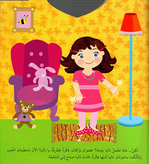 نبذة الناشر:اليوم، استضافت تاليا صديقتها صباح، ستلهُوانِ بِمُتْعةٍ معاً! لكن، في هذه المرة، لا يتعلَّقُ الأمر بالدُّمى، أو باللُّعبِ المَحْشُوَّةِ، أو ألعابِ التَّسلية، لا اليوم، ستتنكران، داخلَ صُنْدوقٍ عجيبٍ في السَّقيفةِ، وجدتِ الفتاتانِ كُلَّ ما تحتاجان إليه.