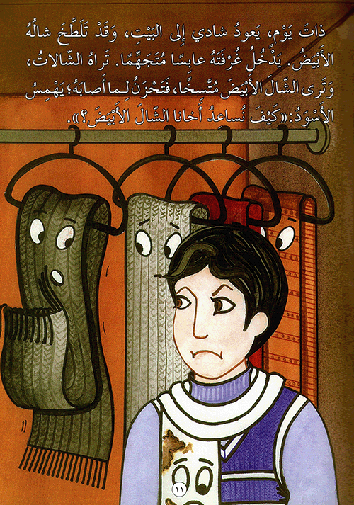 شادي أنيق في لباسه، عنده شالات كثيرة وبألوان متنوّعة، لكنّه لا يرتدي إلاّ الشّال الأبيض؛ تحتجّ الشّالات الأخرى، وتعترض على ذلك... فهل يبقى شادي متعلّقاً بالشّال الأبيض وحده؟... ...إقرأ المزيد