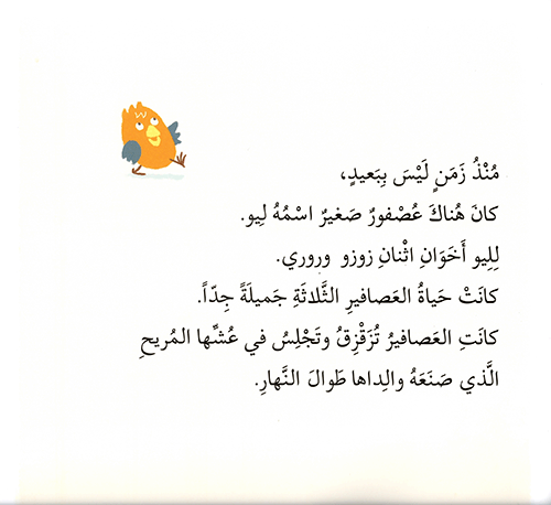 نبذة الناشر:في يوم من الأيام، خرجت العصافير الصغيرة من عشّها الصغير للبحث عن مغامرة ورؤية العالم. بدأت العصافير الصغيرة تقفز في الهواء محاولةً الطيران… ولكن عندما حان دور ليو الصغير، لن تصدقوا ما حصل! نظر ليو إلى الأسفل. تغيّر لون ريشه إلى الأصفر… ثم إلى الأبيض… وبعدها إلى الأخضر. تراجع ليو ...إلى الوراء، ورفض أن يتحرك. أهذا معقول عصفور يخاف المرتفعات؟ إقرأ المزيد