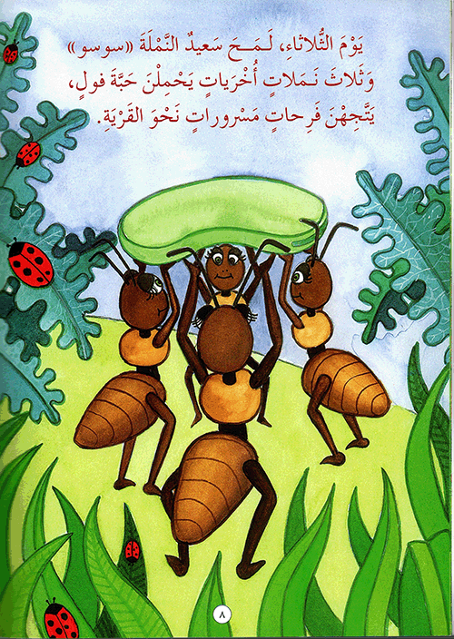 ابْتَسَمَتِ النَّمْلَةُ، وَقالَتْ: "سوسو، اسْمٌ لَطيفٌ، شُكْراً لَكَ يا سَعيد".نبذة الناشر:سعيد يحبّ الطّبيعة كثيراً، يرى النّملة "سوسو" في حديقة منزله، ويأخذ منها دروساً وعبراً، كلّ يوم، يسجّل درساً حياتيّاً على ...دفتره الخاصّ؛ فماذا يتعلّم سعيد من النّملة؟... إقرأ المزيد