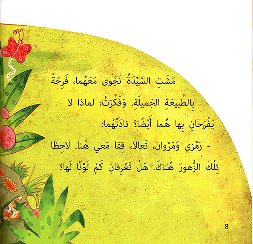في أحد الأيام قررت السيدة نجوى، أم رمزي، أن ترافقهما وتتنزه معهما. لاحظت السيدة نجوى تلك الزهور الجميلة فبدأت باختيار رمزي ومروان بالسؤال عن ألوانها، وأشكالها ...وبدأ الصديقان يدوران على الزهور ليكتشفاهل "هذه بنفسجة"... وهذه فلة بيضاء، وتلك الحمراء من شقائق النعمان، وهنا وردة زهرية، قربها أقحوانة وزنبقة" وبينما هما على تلك الحال نظراً إلى السماء فوجدا غيمة بيضاء تحوي صوراً رائعة تخيل إليهما أن من بين تلك الصور "حصان أبيض" اطلقا عليه اسم "الحصان الغيمة" وبدءاً بنسج قصة خيالية بطلها ذلك الحصان وقد نزل إلى الأرض بعد أن اصبح اسمه "سحاب" وبدأ باللعب معهما وسط الفراشات والعصافير والزهور... إقرأ المزيد