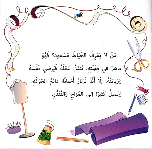 "الخياط مسعود" –حكاية ممتعة تعلم الأولاد أنه لا يجوز أن نسيء معاملة الآخرين، وأنه من غير اللائق أن نضيع وقت غيرنا، وأن ننظم عملنا ونحترم مواعيدنا، كي لا تصبح حالنا كحال هذا الخياط الفوضوي. إقرأ المزيد
