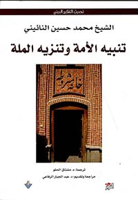 نبذة الناشر:طُبع لأول مرة عام (1327هــ/ 1909م) بالفارسية، ويُعدّ كتاباً ذا مكانة خاصة في الفكر السياسي الشيعي، وبياناً من بيانات النهضة الإسلامية الحديثة، ومعلماً بارزاً فيها، يكشف عن خصوبة الفكر الإسلامي، ومدى قابليته لمعالجة قضايا العصور المتوالية والمجتمعات المختلفة، ويثبت أن التحرر والتجديد والنضال من أجل التغيير والإصلاح عناوين غير طارئة ...في حياة المسلمين، بل هي عناوين أصيلة لها جذور في تاريخ المسلمين وتراثهم الفكري.