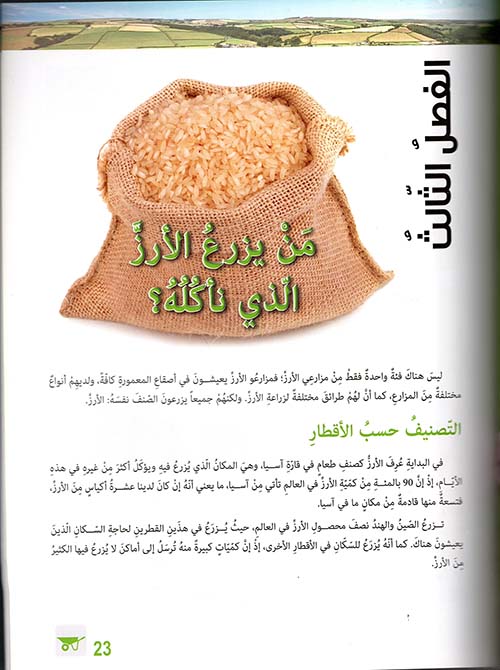 الكتاب الخامس: "الأرزُّ" ويوضح من أين يأتي الأرزُّ؟ تاريخه وأنواعه، ومن يزرعه، وكيف يزرع وما هي طرق زراعته وكيف يتم حصاده، ودور التكنولوجيا في تنمية أنواع جديدة من الأرز وانتهاءً بعملية وصوله إل طبقك.