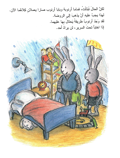 كان أرنوبُ يُفَضّلُ البَقاءَ في البيت دائماً، حتّى ينامَ طيلةَ الصباحِ ويلعبَ طوالَ الليل...