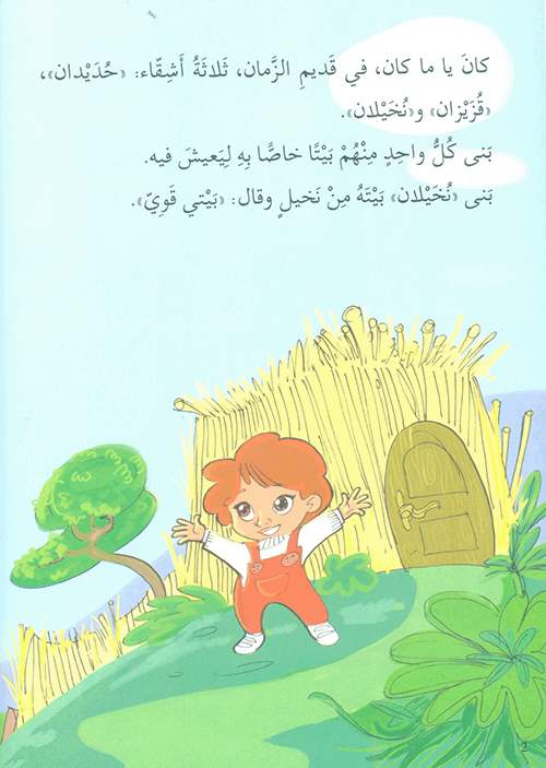 بَنى كُلُّ واحِدٍ مِنْهُمْ بَيْتاً خاصّاً بِهِ لِيَعيشَ فيه، في أَحَدِ الأَيّام، جاءَ الذِّئْبُ الشِّرّير...