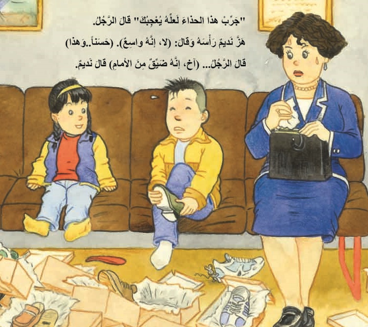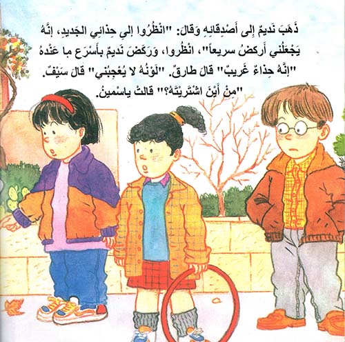 نبذة الناشر:يرافق نديم أمّه إلى السوق؛ لشراء حذاء جديد. يحاول بائع الأحذية مساعدة نديم ،إلاّ أنّ نديم لديه طلب خاص تصعب تلبيته، لكنّه في النهاية، وبعد محاولات عديدة يجد ما يريد. تحثّ هذه القصة الرائعة الطفلَ على التعبير عن آرائه وتزيد من ثقته بخياراته الخاصة.