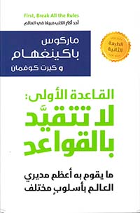 نبذة الناشر:هناك القليلُ من القواسم المشتركة لدى أعظم المديرين في العالم فهم يختلفون في الجنس والعمر والعرق، ويستخدمون أساليبَ مختلفةً، لكنهم بالرُّغم من فروقاتهم، يشتركون في صفةٍ مميّزة: أنهم لا يترددون في كسِّر كل قاعدة من قواعد الحكمة التقليديَّة، فهُم لا يعتقدون أن شخصاً ما قدى تلقَّى تدريباً كافياً، قادرٌ على ...إنجاز أيِّ عملٍ يُطلبُ منه إنجازه، وهم لا يحاولون مساعدة الناس في التغلُّب على نقاط ضعفهم، كما أنَّهم يتغاضّون بشكلٍ مستمر عن "القاعدة الذهبية"، حتَّى إنَّهم يُحابون بين الموظَّفين... إن هذا الكتاب المذهل يشرح الأسباب.