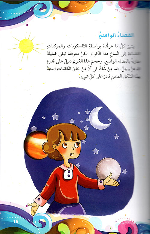 نبذة الناشر:الحيواناتُ، والنباتاتُ، وأجسامُنا، والفُصولُ، والسماءُ، والأرضُ، وما تحتَ الأرض، وجمال الأرض، والطبيعة والتكنولوجيا، والفضاء، والكائنات الحية وقدراتها، كل شيءٍ فيها يدلُّ على وجود الله.. حيث تنتظر الأجيال الناشئة مغامرةً مثيرةُ حافلةٌ بالمتعةِ والمعرفة بينَ هذه المجموعة العلمية الغنية بالرسوم والألوان.